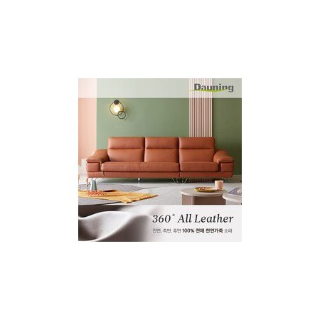 • 다우닝 레아 4인 전체 천연가죽 소파 (색상:진 그레이)